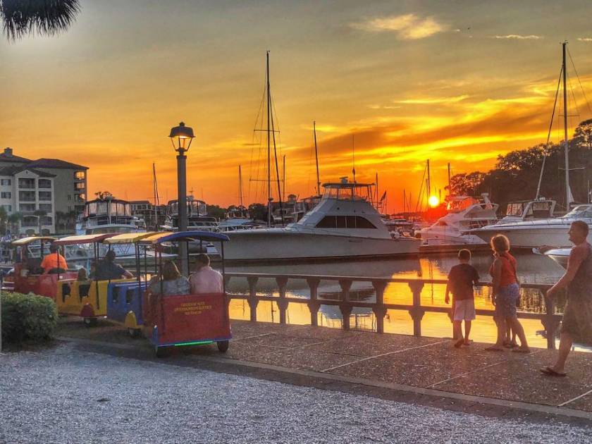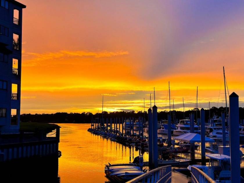 Shelter Cove Marina, located in the heart of Hilton Head Island, is a bustling hub of activity with a variety of shops, restaurants, and entertainment options. The marina's waterfront location makes it an excellent spot for sunset viewing.