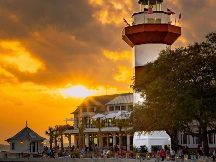 Climbing to the top of Harbour Town Lighthouse provides an unparalleled vantage point for sunset viewing. From here, you can see the sun setting over Calibogue Sound, with the colorful sky reflected in the water below. The picturesque views, combined with the historic charm of the lighthouse, make this a unique and unforgettable sunset spot.