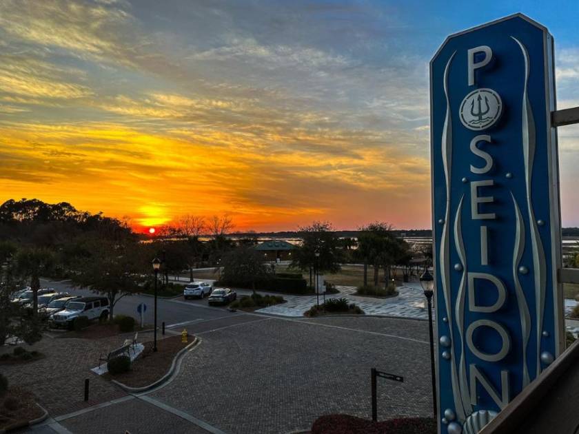 Poseidon, located in Shelter Cove Towne Centre, offers a vibrant dining experience with stunning waterfront views. The restaurant's rooftop bar provides a prime location for enjoying Hilton Head's beautiful sunsets.