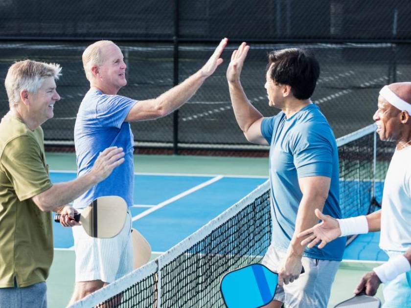Pickleball really is for everyone and so you will meet all kinds of people out on the court – which is a good thing! Not only that, but the small dimensions of the court mean that you will be physically close to the other players. Because of that you will have a chance to socialize with everyone who is playing that day. A lot of pickleball is based on open play (all players of any skill level are invited to play on the courts for a set time frame) so you may meet all new people everyday. Or you may play with the same people every time. Either way, you will have a chance to socialize while improving your game.