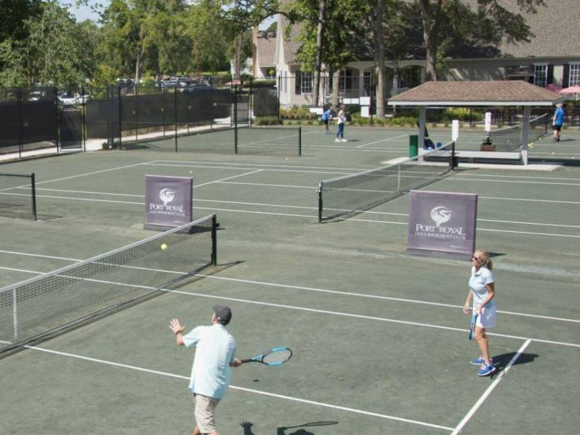 The Port Racquet Club located in the Port Royal Plantation community features 8 Har-Tru clay tennis courts and 2 dedicated pickleball courts for members and guests.